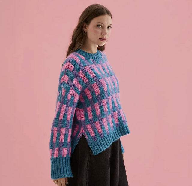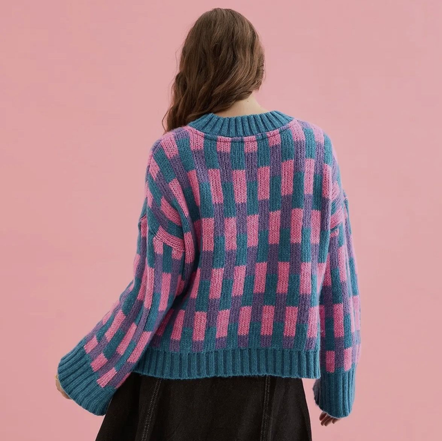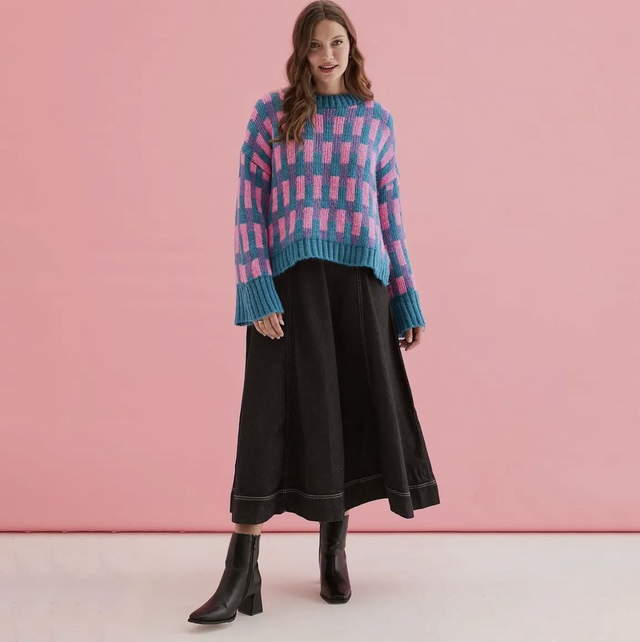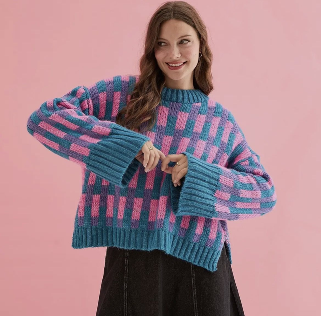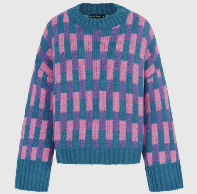 Cara and the sky Charlotte geometric pattern wide sleeve knit jumper