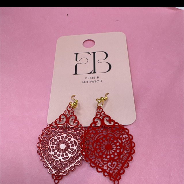 Red metal lace earrings with gold hook