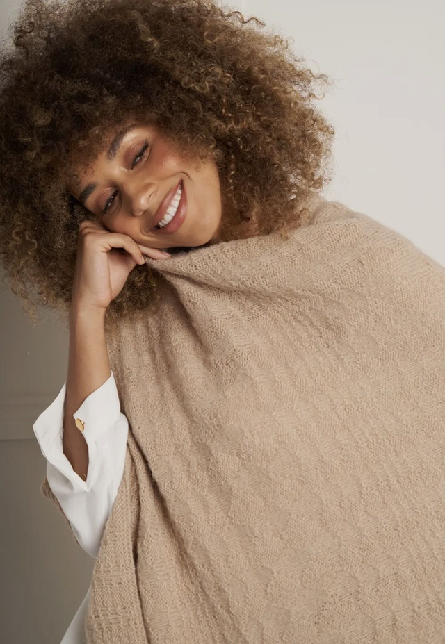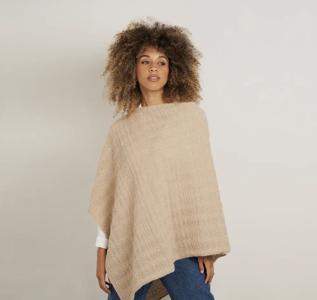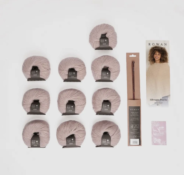 Everything you need to knit Georgia Farrell’s textural poncho, Aldersgate. A modern take on a classic shape, this poncho is an easy-to-wear accessory using Alpaca Classic. The kit includes 10 balls of shade Champagne 127, the pattern, a pair of Rowan Birchwood knitting needles and a Soak wash care sachet to ensure the best of care for your treasured hand knit. The pattern is fully translated in English, German, French, Spanish and Italian. Beautifully packaged, Rowan Knitting Kits make the ideal gift.