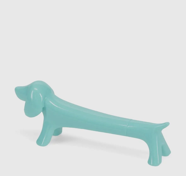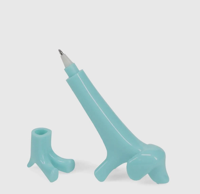 Sweet and adorable sausage dog shaped ballpoint pen, in aqua. A cute and fun addition to a child's pencil case. • Ink colour: blue • Suitable for children aged 3+ Packaging: • Printed card swing tag attached with cotton string