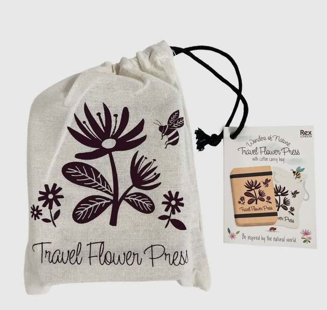 A travel sized version of our popular Wonders of Nature flower press. Flowers and leaves can now be collected and preserved whilst on the move, during countryside walks or trips away. Once these treasures have dried, they can be used for arts and crafts or framed to keep. • Flower press measures 9 cm (width) × 12 cm (length) × 2.8 cm (height) • Features two press plates that are tightened together with two elasticated bands The flower press comes with: • Five sheets of cardboard • Eight sheets of thick paper • Printed cotton carry bag Caution: • This item is not a toy